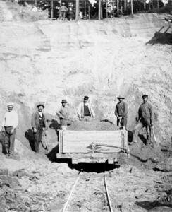 I början av 1900-talet användes rälsgående vagnar som drogs med handkraft. Från 1920 och framåt började maskinerna ersätta handkraft. Till exempel började bandtransportörer och stora gripskor att användas som underlättade arbetet betydligt. Redan på 1930-talet användes diesellok i grushanteringen och på Löten fanns en ånggrävmaskin på 1940-talet.